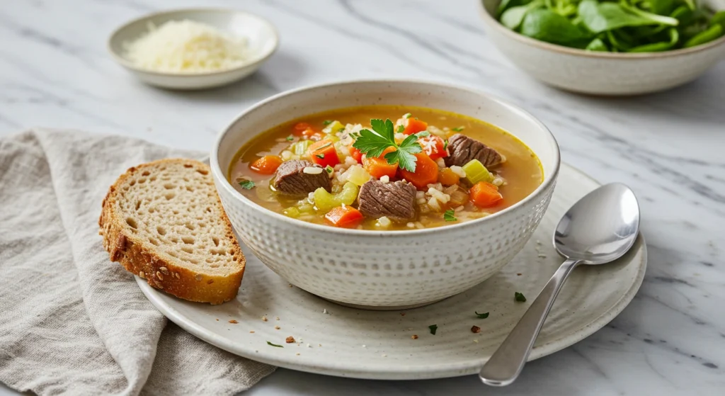 Research suggests that balanced one-pot meals like this Beef and Rice Soup can help reduce daily caloric intake by 15% compared to multi-course dinners.